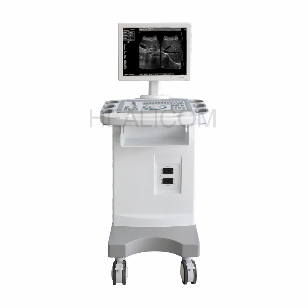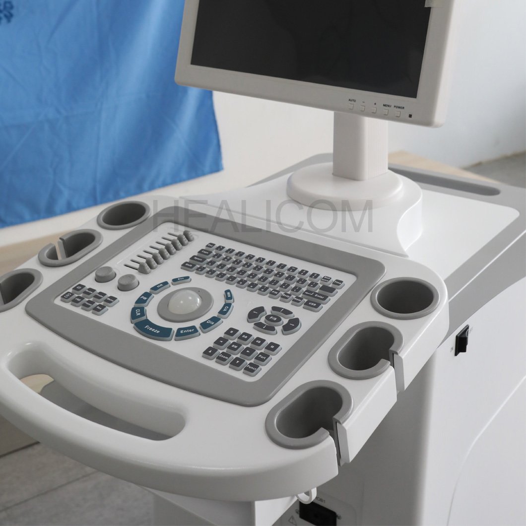 The HBW-10 Trolley B/W Ultrasound Scanner is a powerful diagnostic tool with a 15-inch LED display. It features optional probes (convex, trans-vaginal, linear) and supports various display modes (B, B/B, 4B, B+M, M). The dynamic range is adjustable from 0~120dB. It offers advanced image post-processing, including 8 y correction, frame correlation, and digital edge enhancement. Measurement functions cover BPD, GS, CRL, FL, HL, OFD, TTD, and AC. It includes a puncture guide for precise procedures. The scanner can store 256 cine loop images and 128 permanent images, with SVGA, PAL, and USB output interfaces. Ideal for obstetrics, gynecology, and general diagnostics.