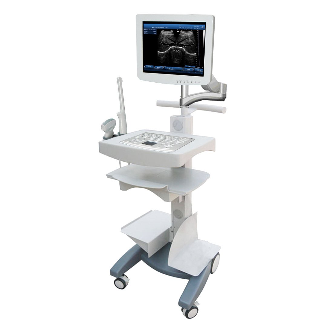 The black and white ultrasound cart is a versatile piece of medical equipment with a wide range of applications. In hospitals, it is commonly used in emergency departments to quickly assess patients with acute abdominal pain, providing immediate diagnostic information to guide treatment decisions. In obstetrics and gynecology wards, it allows for bedside monitoring of pregnant women, checking fetal development and maternal health conditions without the need for patients to move to a separate imaging department. In rural or underserved areas, the portability of the ultrasound cart makes it an invaluable tool for mobile medical teams. They can bring it to local clinics or even remote villages to conduct basic diagnostic imaging, such as checking for gallstones or liver conditions, helping to bridge the gap in medical resources. Additionally, it is used in field hospitals during disaster relief operations or military missions, where it can provide critical imaging support in austere environments. In research settings, the black and white ultrasound cart can be used to collect data for studies on various medical conditions, contributing to advancements in medical knowledge. Overall, its mobility, ease of use, and reliability make it a crucial asset in diverse healthcare scenarios.