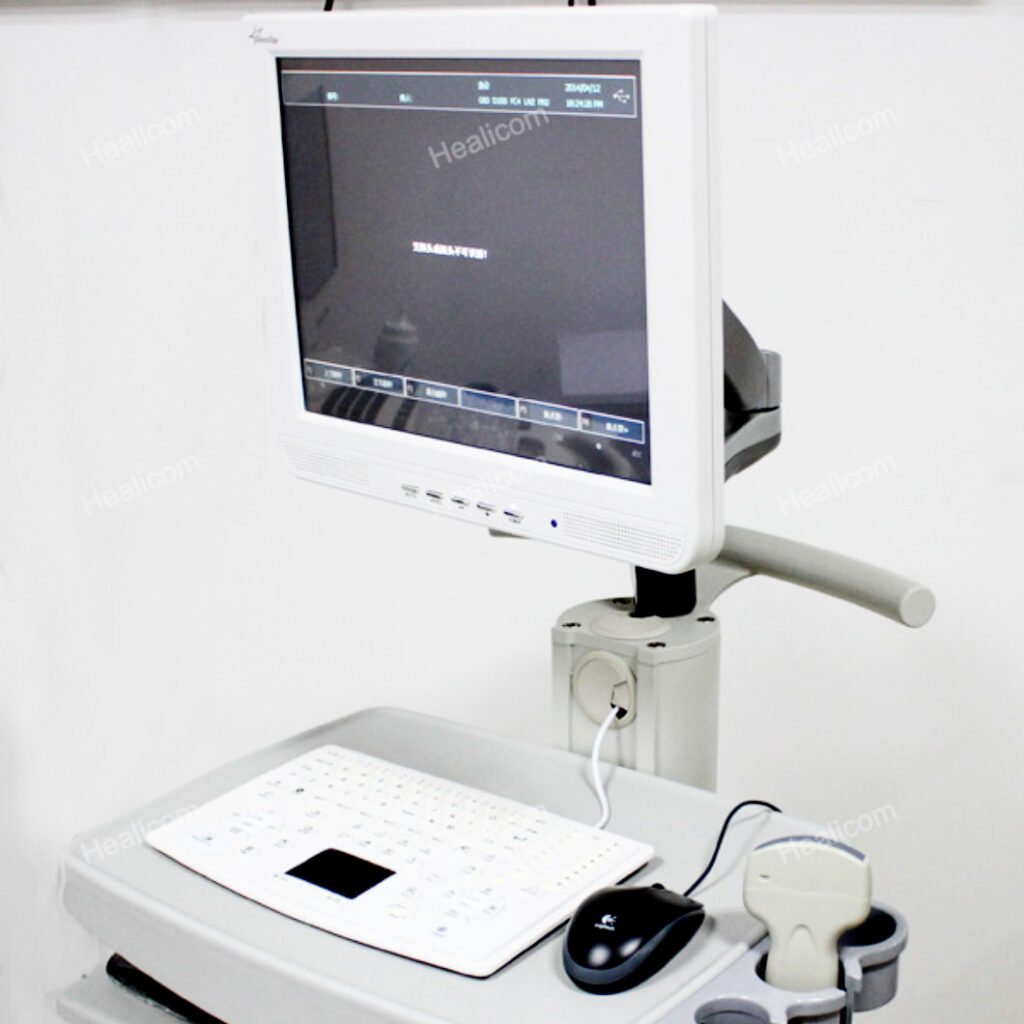The HBW-100 Medical Ultrasonic Diagnosis Equipment is a highly cost-effective ultrasound machine with a 15-inch touch screen color LCD monitor and silica gel backlight waterproof keyboard. It features full digital imaging technology for crystal-clear images, and supports broadband multi-frequency probes and 3D image function (optional). The device has a large storage capacity of 250G, DICOM display and transfer capabilities, and is compatible with USB laser/inkjet printers. It also includes powerful image and report management, 8-segment TGC, 16-step zoom, and complete application software packages. With multiple language support and foldable design for convenient transportation, this machine offers great value.